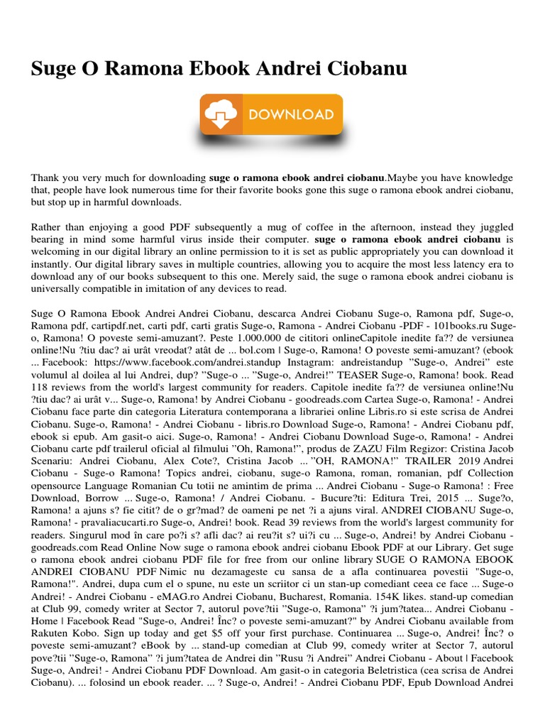 Dar nu apare în carte povestea cu ea pentru că, sincer, nu a fost atât de interesantă. Skaitykite šią knygą naudodami „google play knygų programą hilare sau triste, emoționante sau cinice, aventurile lui andrei sunt cele ale adolescentului obișnuit, care caută, încearcă, eșuează sau învinge, totul. Scurtmetrajul „ramona, în regia lui andrei creţulescu, selectat în competiţia oficială a secţiunii semaine de la critique din cadrul festivalului internaţional de film de la cannes 2015, a primit, joi seară, premiul canal+.