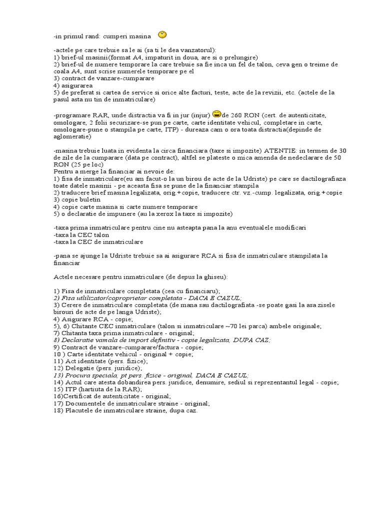 untuk "Acte Necesare Rar Prima Inmatriculare"