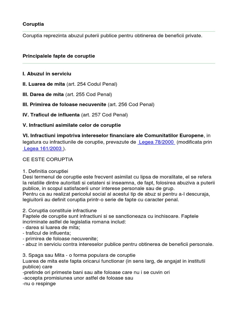 vizitati articolul complet aici : https://www.legistm.ro/blog/infractiuni-de-coruptie-si-de-serviciu Mai jos poate fi vizualizat un extras din document (aprox. Avocat dobrescu bogdan 9th apr. În literatura juridică de specialitate, în sfera noţiunii de corupţie în mod strict înţeleasă, sunt incluse patru infracţiuni din categoria infracţiunilor de serviciu sau în legătură cu serviciul.
