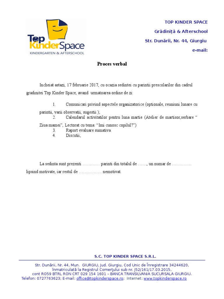 Proces verbal pentru sedintele cu parintii. 22 0 64kb read more. Ordinea de zi cuprinde drept pentru care a fost încheiat prezentul proces verbal.