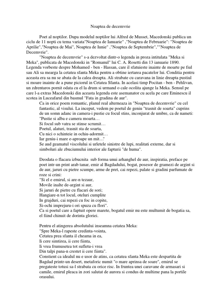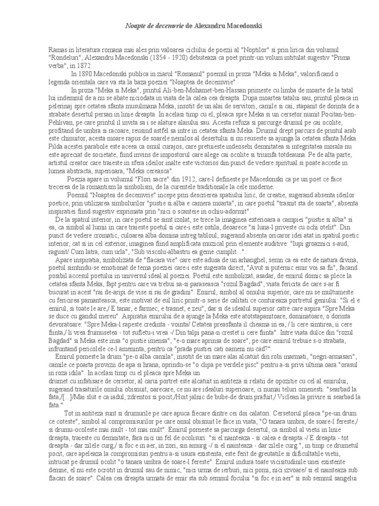 Doua comentarii la poemul noapte de decemvrie scris de poetul roman alexandru macedonski la 27 decembrie 1901 şi inclus în ciclul de poezii flori sacre. Pe cea a lui pocitan care intra biruitor pe poarta mekai. Comentariul poemul lui macedonski, desi creat pe o tema si pe simboluri romantice, ramane in.