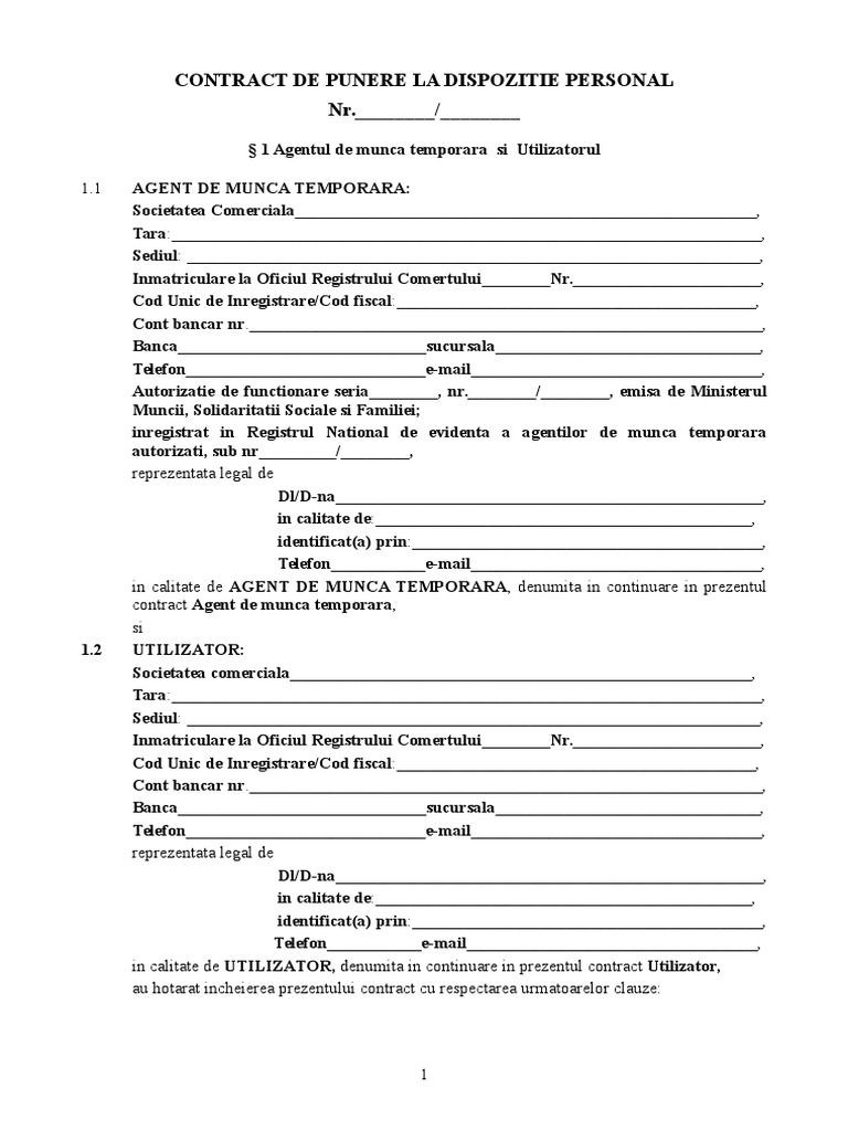 Avantajele incheierii unui contract de antrepriza pentru efectuarea unei lucrari determinate buna ziua! Angajatul temporar are aceleasi drepturi ca si ceilalti angajati cu. Agentul de munca temporara este societatea comerciala autorizata de ministerul muncii si solidaritatii sociale, care pune provizoriu la dispozitie agentul de munca temporara pune la dispozitie utilizatorului un salariat angajat prin contract de munca temporara, in baza unui contract de punere.