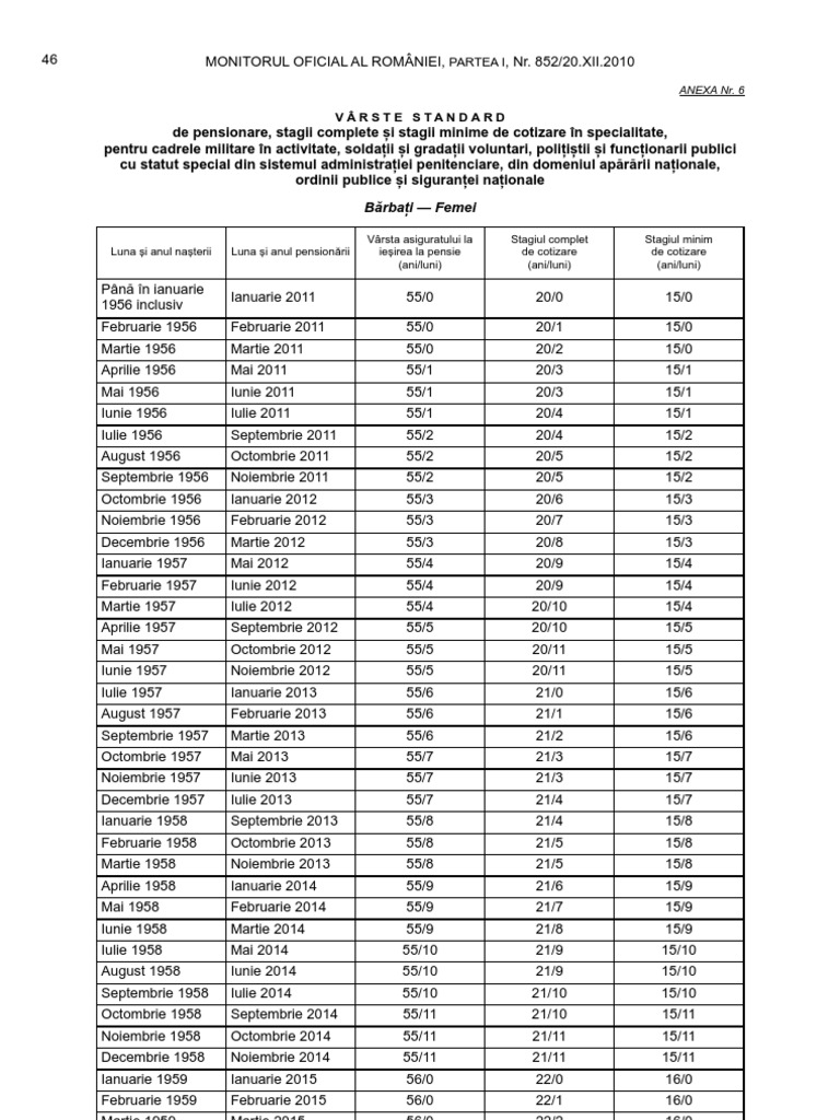852 din 20 decembrie 2010. 263 din 16 decembrie 2010 privind sistemul unitar de pensii publice. 263 din 16 decembrie 2010, publicate în monitorul oficial nr.